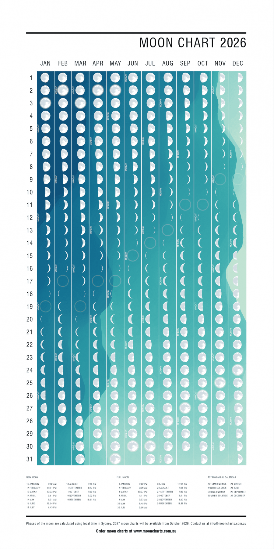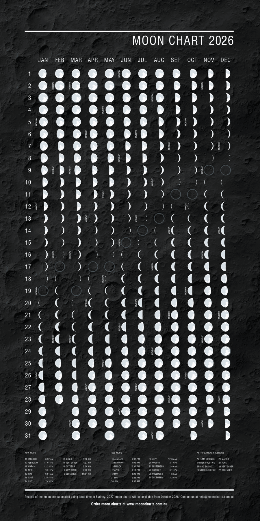 $33.00A stark lunar surface background with craters and shadows highlights the phases of the moon.